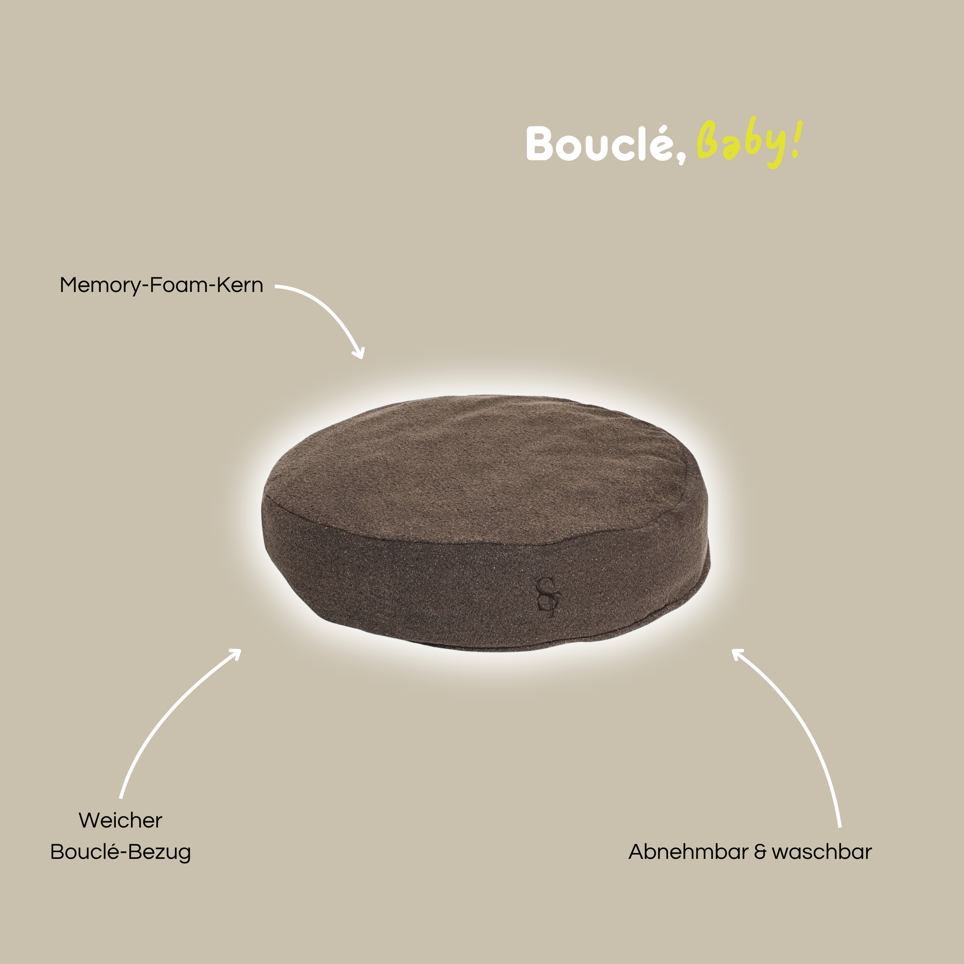 Material: Bezug: Bouclé-Stoff I Füllung: Memory-Foam-Kern