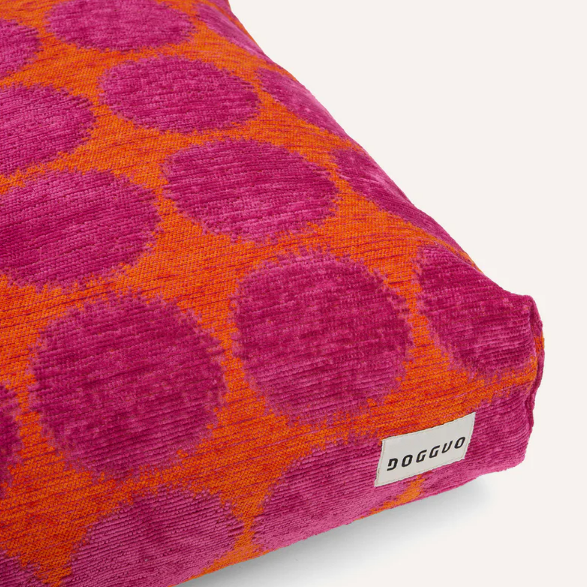 Das Dot Dog Bed verbindet elegantes Punkt-Design mit orthopädischem Komfort – gerade richtig, um sich entspannt auszubreiten oder gemütlich einzurollen. Mit Memory-Foam-Flakes und Silikonfasern gefüllt, ist es stützend für den ganzen Körper. Ideal für Hunde, die Wert auf Stil und gute Schlafqualität legen.